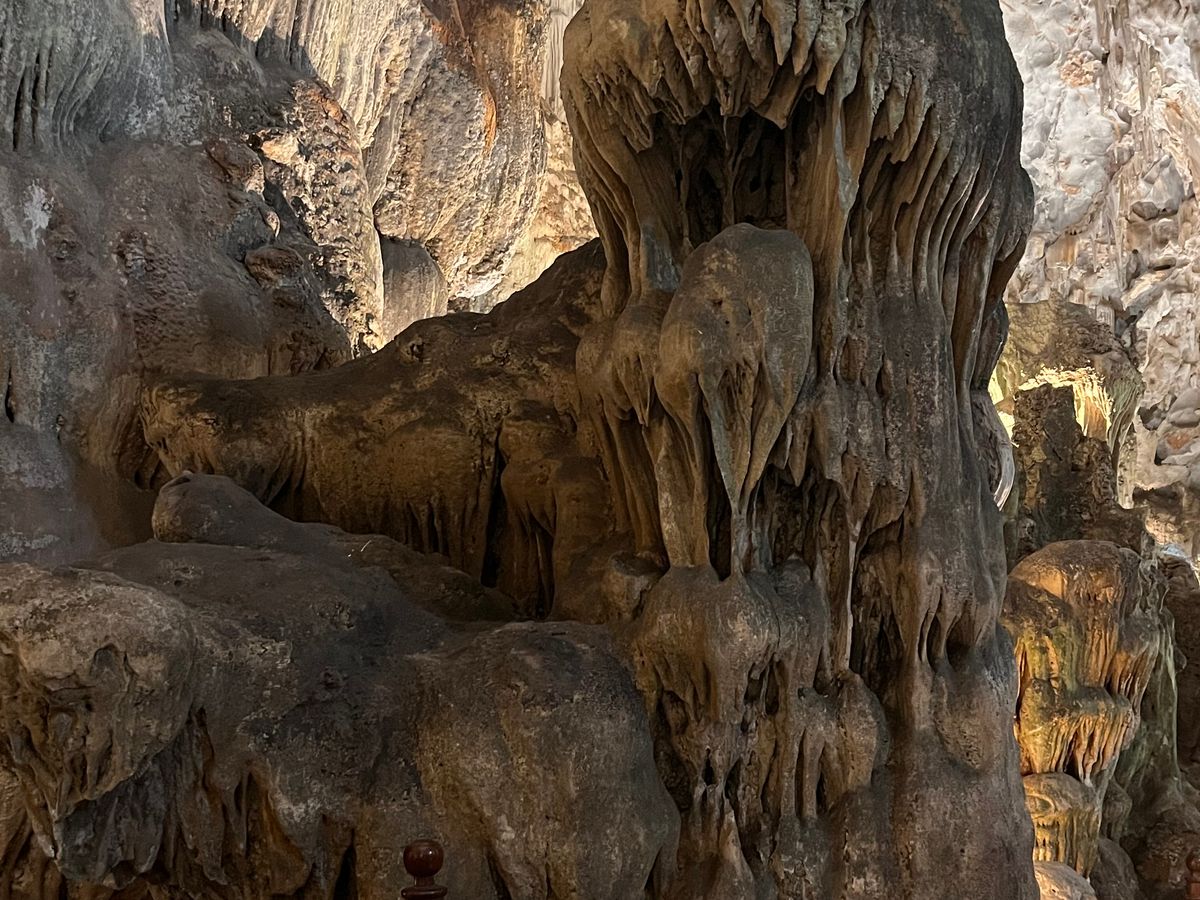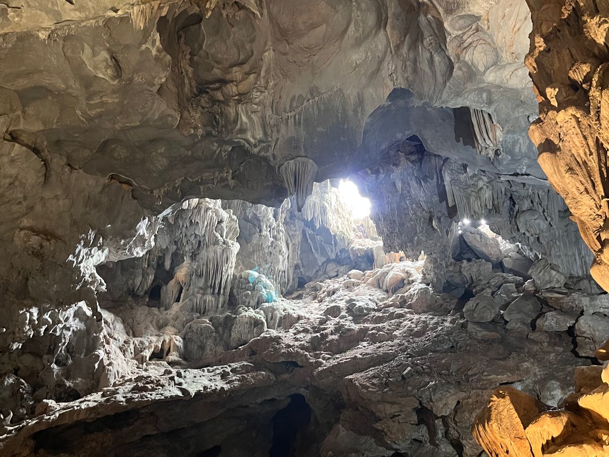 ハロン湾クルーズ、事前にYouTubeで確認した上で参加いたしましたが、天気は曇りで海の色はそれほど良くなく、このあたりはYouTubeどおりでした。が、鍾乳洞は思ったよりかなり良く、素敵な体験でした。洞内の広さもしかりですが、本当に様々な鍾乳石が展開されており、息を飲みなした。2024年の台風の影響で、道中の手すりなどが壊れた状況でしたが、安心にて参加でき、とても素敵な思い出になりました。