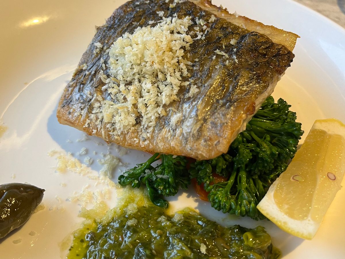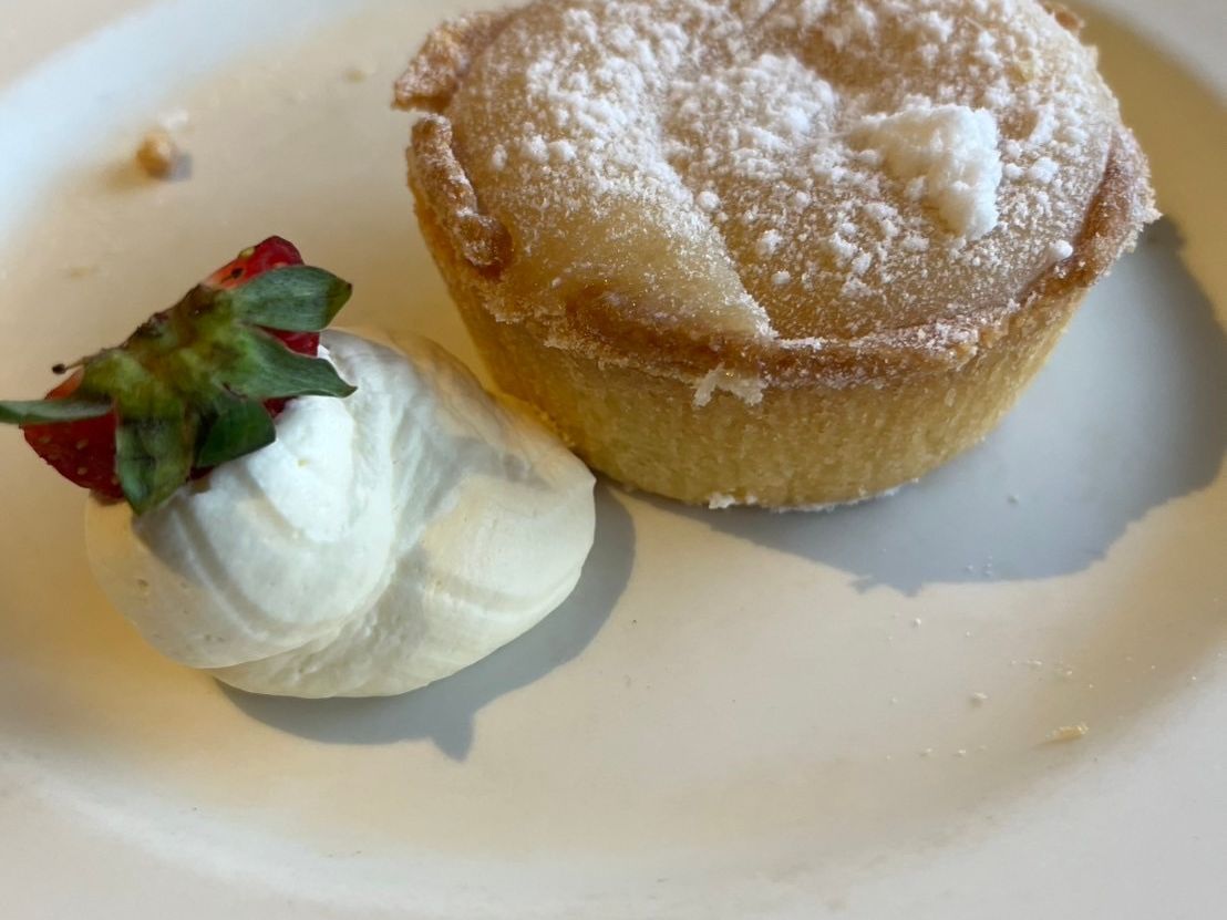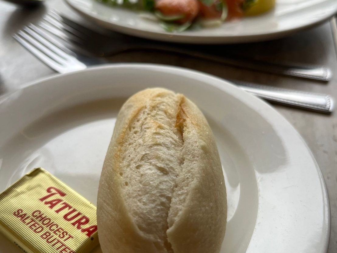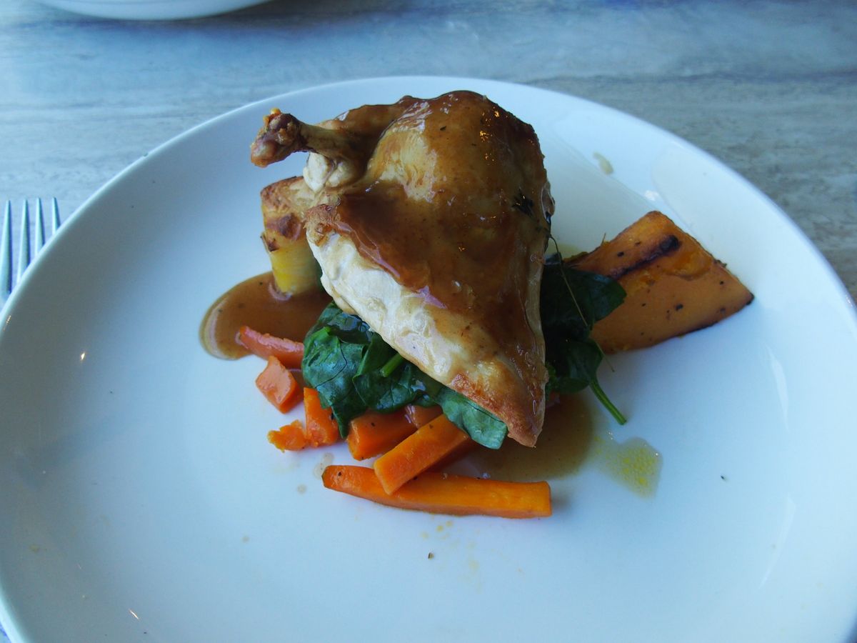 食事は前菜とメイン、パン1つにデザートと、少なめです。メインのバラマンディのソテーは美味しかったですが、前菜のサーモンはやや塩辛く、デザートのタルトは甘ったるくてイマイチでした。また、飲み物は追加料金です。食事に関してはあまり期待しない方がよいかと思います。