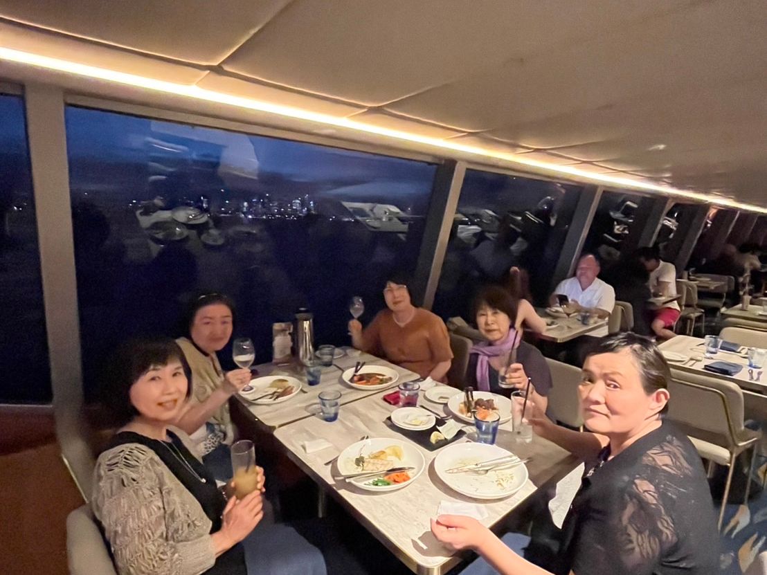薄暗くなってからの出航でだんだん闇に包まれる中、ワインを頂きながらゆったりと満喫出来ました。