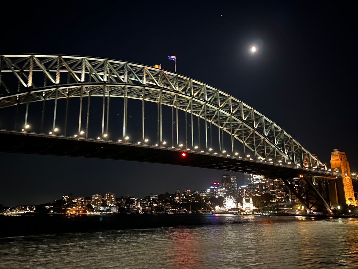 ホールスタッフの皆さんも陽気で楽しくおしゃべり出来ました。食事のあと、デッキで夜風に当たりながらオペラハウス、ハーバーブリッジを眺めてシドニーを楽しみました。