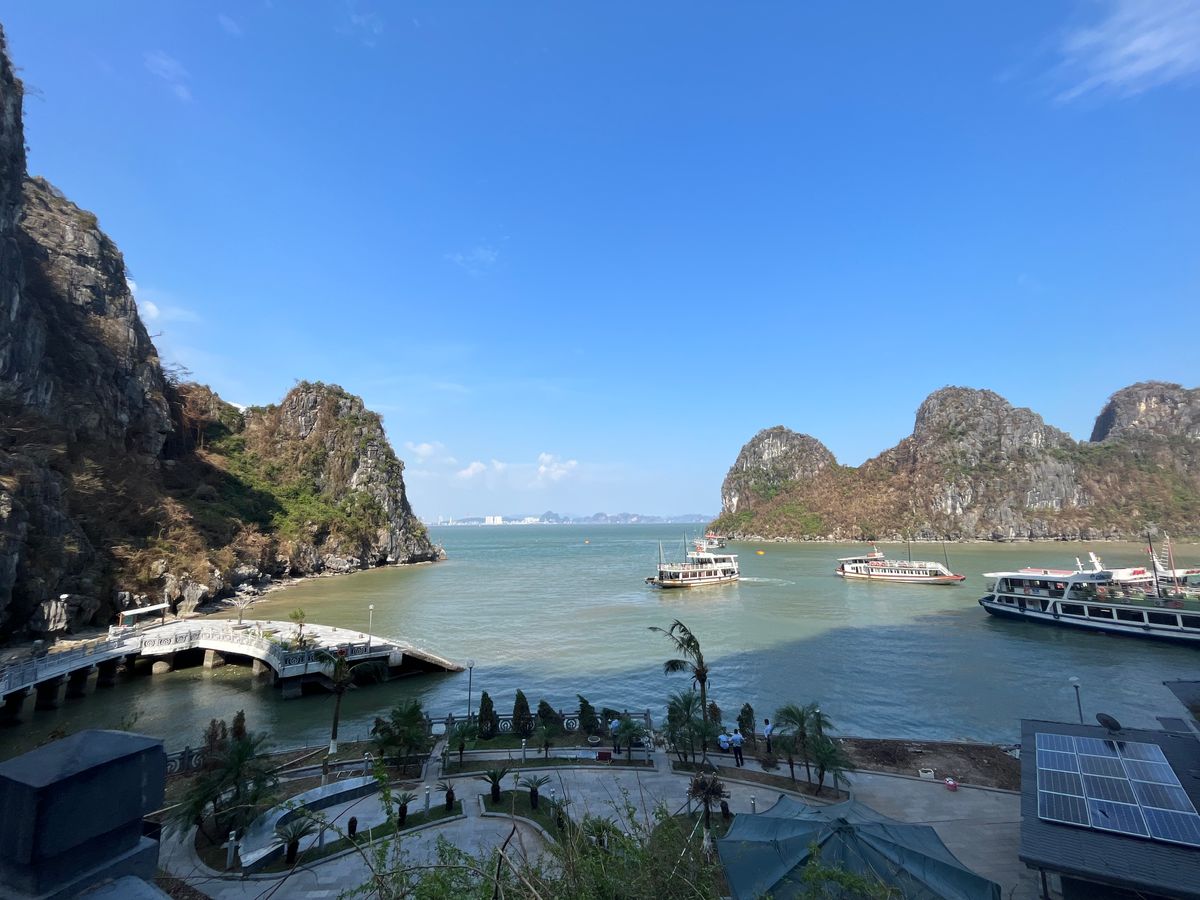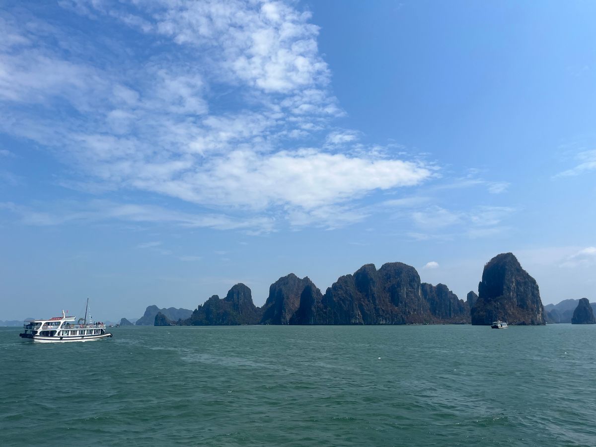 快晴のなかハロン湾に行けてよかったです。海鮮はとても美味しかったです。とくに春巻きが美味しかったです。飲み物は別料金でした。飲み物はスーパーの価格より高いですが、観光地にしては割とリーズナブルなほうです。(ぼったくりくらいの価格ではありません。)ボートは1時間自由に漕ぎました。水着を着ましたがあまり慣れませんでした。鍾乳洞はとても大きく綺麗でした。中はとても広く天井も高いです。