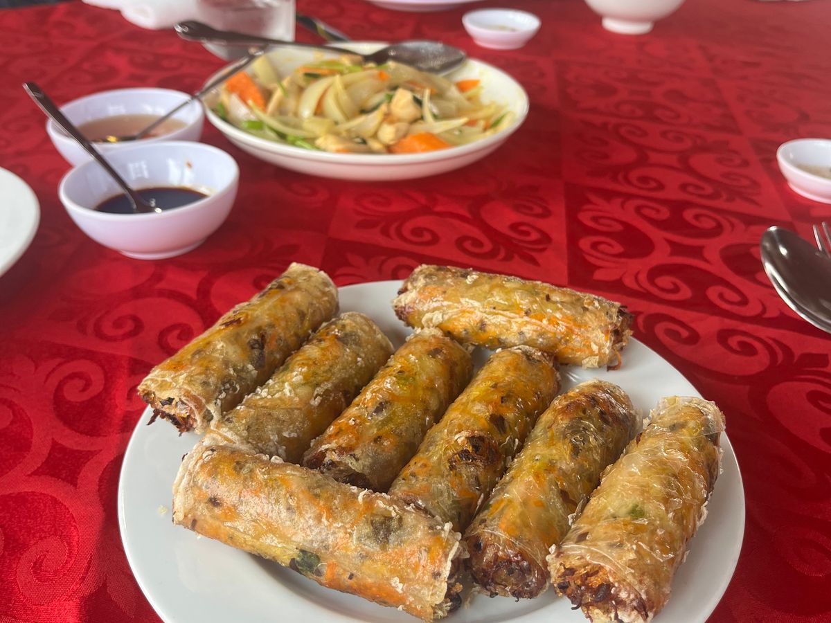 ハロン湾クルーズでの昼食はお腹いっぱい食べられるくらい料理が多く、美味しかったです。(ただ飲み物の値段は別会計でハノイ市内に比べると数倍はしました、日本と同じくらいなので許容範囲)