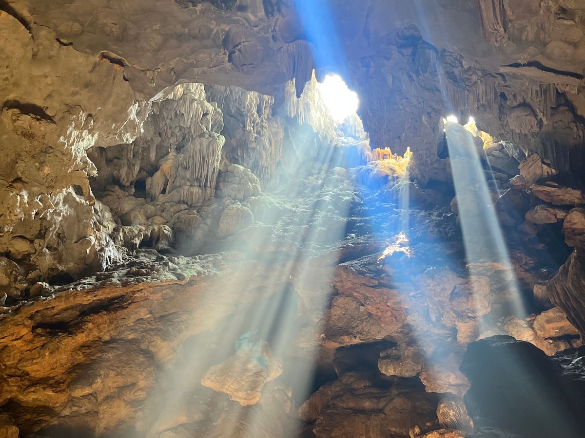 鍾乳洞を1箇所巡り、たまたま?ですが光の筋が差し込んでいる場所がありとても綺麗でした!