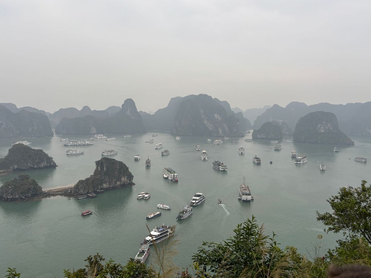 朝からお天気でした!ハロン湾がとっても綺麗に見れて嬉しかったです。海はそんなに嫌いじゃないですが総じて景色は抜群。ティートップ島の展望台からの眺めもとてもいいのでちょっと大変ですが登るのをお勧めします。帰りのクルーズ船からの夕陽が抜群に綺麗でした。最初にSA的なところに行きますが、全て高い値段設定なので必要なければ買わなくていいです。またペットボトル持ち込み禁止とアナウンスありますがクルーズ船での飲み物を買わせるためだと思われます。