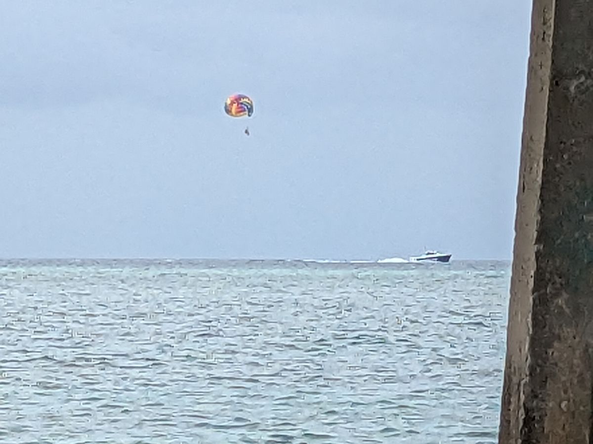 パラセーリングを船が到着してから桟橋の上で予約し、10:30の回を申し込みました。