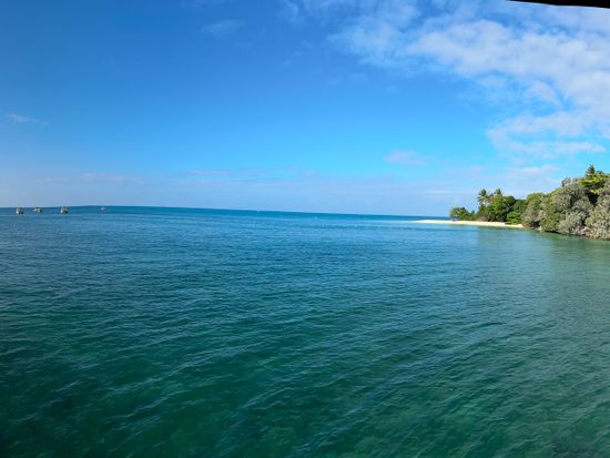 グリーン島からさらに船で沖合いに、思ったより深いところでシュノーケリング、島の周りと比べて魚の種類と多さが違いました。少し離れたところで、カメも見れたとのこと。