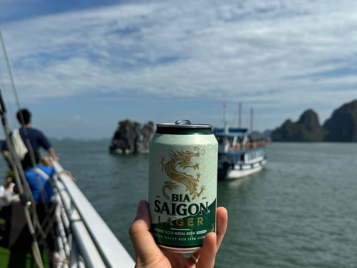 ハロン湾では、ペットボトルは持ち込み不可なので、移動する際にクルージングに戻る度に缶ジュースやアルコール、水を勧められます。(3-4回くらい?)ツアー参加時点でのお水のお値段は、25K~のお値段でした。
