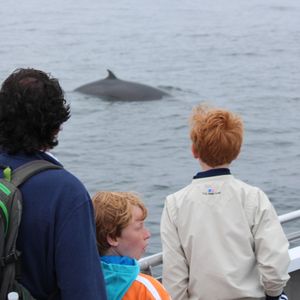 曇天の中、ホエールウォッチングに出発しました。クジラに遭遇できるポイントまで約1時間かかりました。クジラが居るポイントの波は穏やかでしたが、港を出て20分程から30分間位、かなり揺れました。船酔いが心配な方は酔い止めの服用をお勧めします。