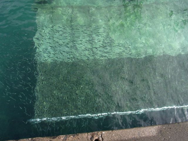グリーン島に着くと、桟橋の下に魚たちが沢山居て非常に綺麗な海でした。