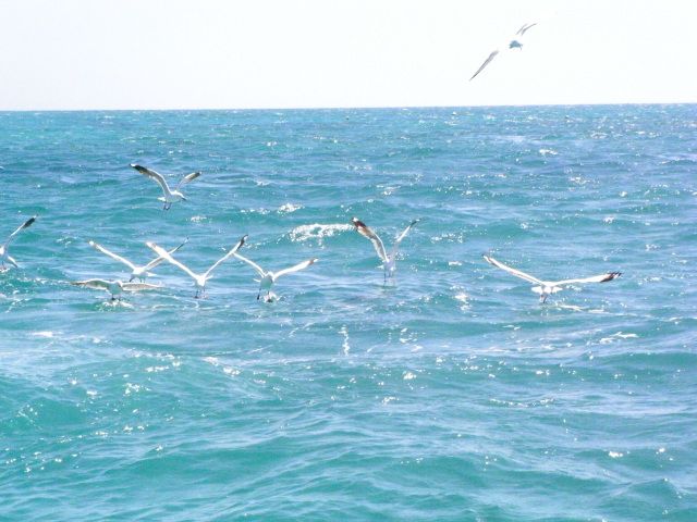 鳥がたくさん飛んでいました。ぼーっと観ていたら鳥が海の中に入っていき魚を捕まえていました!