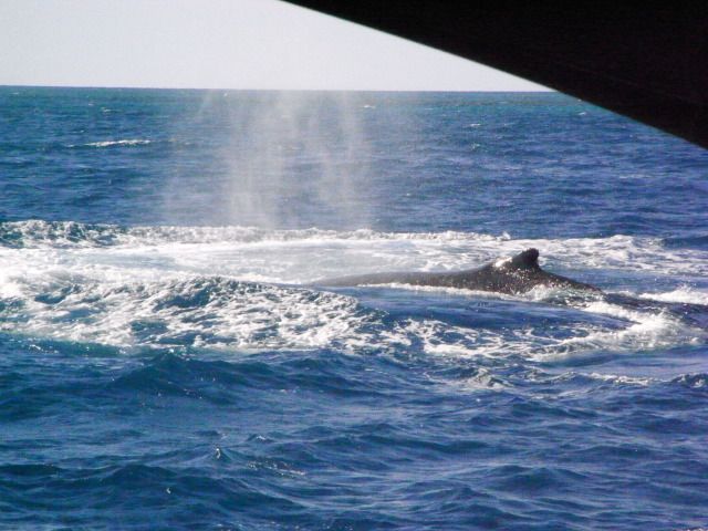 8月お盆休みに行ってきました。南半球は冬とはいえ照りつけんる太陽は夏そのものでした。30分も甲羅干しをしているろじりじりと背中が痛くなりそう。しかしやはりそこは冬、海水だけは少々冷たくウェットスーツを着ていないと胸まで水に入るのはちょっと冷たいかな。外国人は平気で泳いでいましたが。行きの高速船は展望デッキにいたので風が強く、かなり揺れて50分が長く感じましたが、途中くじらに遭遇。船がスピードを落とし近くまで寄ってくれたのでまじかに生くじらを見ることができ感激でした。
