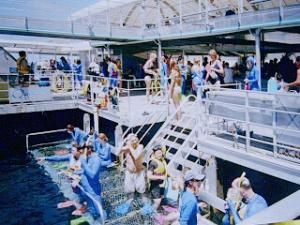 2005年3月15日に参加してきました。昼食はバイキング形式で例によってあまり美味しくはありませんでした。ダイヤモンドヘッドの先の沖合いでクジラ親子ののスプラッシュを探してクルーズしましたが、何頭もの群れに遭遇出来てとても感動的なシーンを見る事が出来ました。ツアー自体には大変満足出来ました。