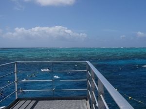 そこは想像以上に大きくて、立派なポンツーンでした。まずはクラゲ避けのウエットスーツに着替えて、右側の方からシュノーケル。沖に沖に行くと、さすがにアウターリーフ透き通るような水。カラフルな魚、珊瑚。綺麗です。左の方から入ると、得ずけされた大きな魚の群れが迎えてくれます。此れもまた楽しい。
