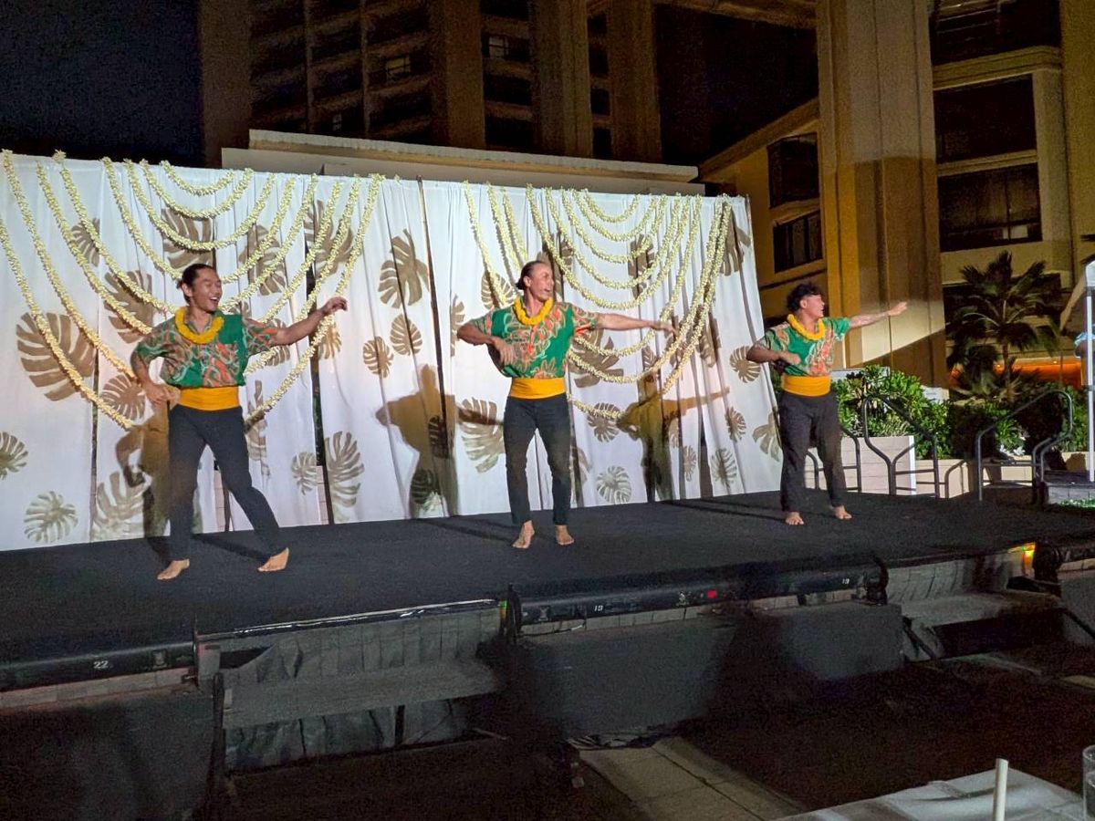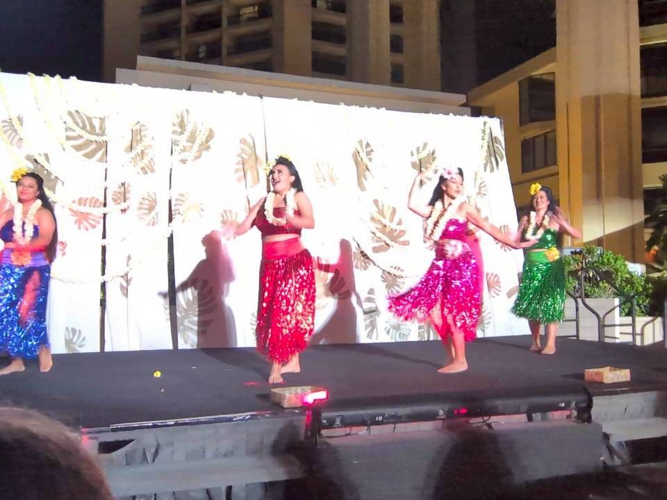 本格的なフラショーを鑑賞したくて調べていたところ、このビュッフェ付きのショーを見つけて予約しました。受付を済ませると、レイを首にかけていただき、そのまま席へ。すぐにビュッフェを堪能、さすがハイアットの料理だけあってどれもとても美味しく頂きました。定期的に行っているショーのようですが、ステージの作りはいささか簡素に見えて、始まるまでは若干の不安を感じましたが、いざ始まるとステージの上で躍動感あふれるダンサーの方たちにすっかり魅了されてしまいました。