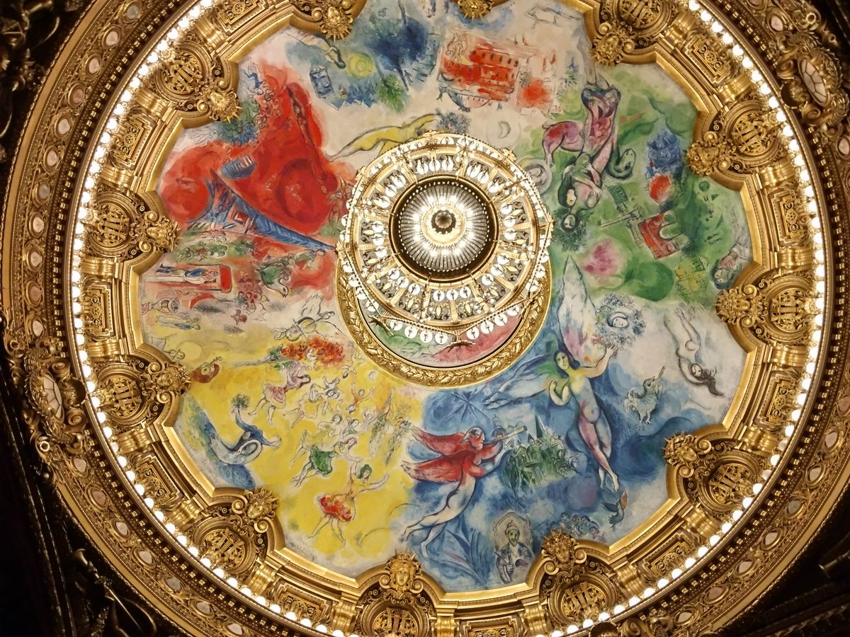 シャガールの天井画を見上げ周りを見渡しました。席は中央前から5列目でバレリーナのつま先の素敵な動きが目の高さで鑑賞出来て感激しました。満足です。