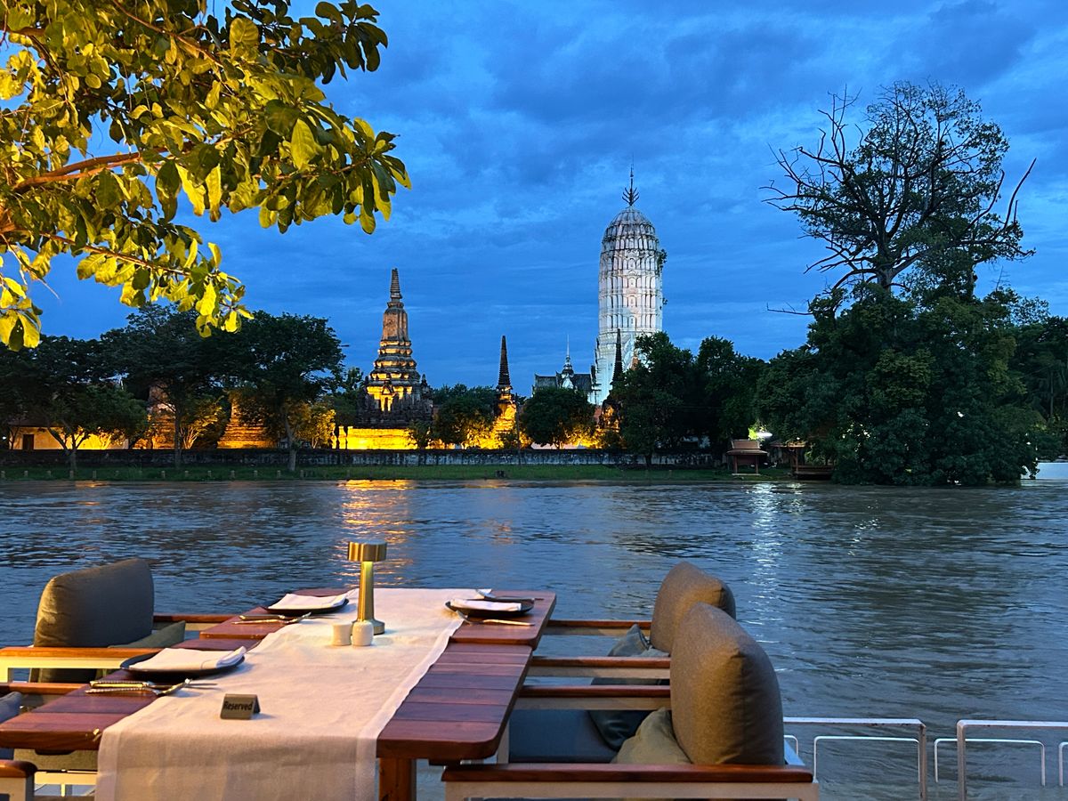 なかなかの超盛沢山な一日でしたが、タイ観光でみたいものは全てコンプリートできました。ガイドさん、ドライバーさんも良い人に当たり、すごくホスピタリティに富んだサービスを提供下さいました。観光上のハイライトはアユタヤ遺跡ライトアップ鑑賞ディナーです。写真にあるように日没にあたる最高の時間帯に、最高のレストランで、最高のディナーを楽しませていただきました。