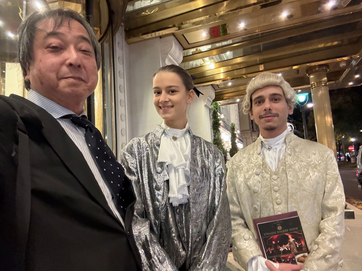 私は今年定年退職の記念としてひとりでウィーン旅行を計画しました。過去にウィーンには訪れたことはありますが今回初めて「モーツァルトVIPパッケージ」をホームページで見て申し込みました。当日18時にインペリアルホテルのOPUSレストランに行き、自分の名前を告げると座席に案内してくれました。最初に飲み物(有料)のオーダーがあり私はオーストリア白ワインのグラスを注文しました。パンとその後、前菜、スープ、マッシュルームがたくさん添えられている牛肉ステーキ、デザートのブルーベリー、いちごが添えられたヨーグルトアイスの4品が出てきてどれも美味しかったので完食しました。食事が終わる頃、モーツァルトオーケストラのスタッフ2名が来て今後のスケジュールについて説明がありコンサートチケット、プログラムを渡されてホテルの前で待機していた馬車に乗って約15分ウィーン国立歌劇場周辺を回って今夜のコンサート会場であるウィーン楽友協会ホールの楽屋口で下ろしてもらいました。その後スタッフからホールの座席に案内してもらい休憩中にサービスで頂けるドリンク(代金に含まれる)を注文をしてオールモーツァルトプログラム、当時の衣装でヴァイオリン協奏曲やオペラ歌手によるモーツァルトの有名なアリア他を聴いて堪能しました。指揮者、歌手、オーケストラはとてもレベルの高い演奏でした。前半の休憩時に楽屋のロビーに案内されて事前に頼んだドリンクを飲みながら、指揮者、ソリストと談笑して写真を一緒に撮ってもらいました。後半も盛り上がってアンコールは今年生誕200年のヨハン・シュトラウスのワルツ「美しく青きドナウ」とラデッキイ行進曲で終演しました。帰り際にスタッフからウィーンモーツァルトオーケストラのCDを2枚頂きお開きとなりました。音楽の都ウィーンで素晴らしい夜を過ごすことができました。ぜひこのプランおすすめします!