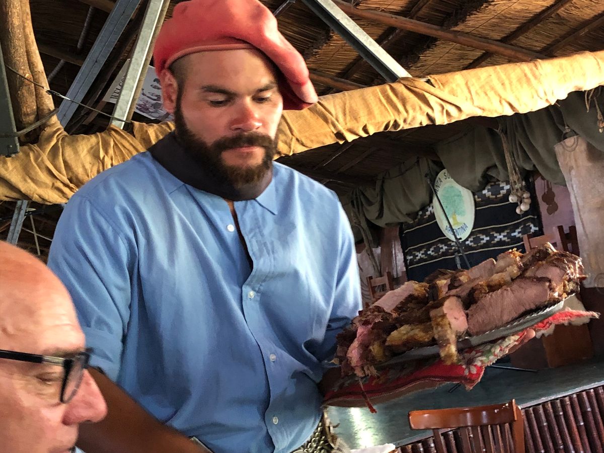 また何百席もある食堂でのランチは、たっぷりの野菜と次々と勧められるアサードにワインもビールも頼めるし、ステージではタンゴやフォルクローレも披露され、お客様は踊る踊る!