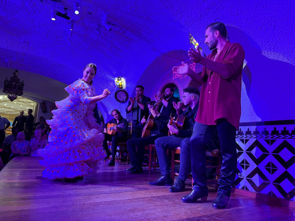 食事コースを注文した人は、舞台最前列で観賞するサービスがある。踊り手は女性2名と男性1名で、迫力のある演舞を観ることができる。日本人向けなのか、18時から食事、フラメンコ19時からと早い時間からの設定があるのは良い。