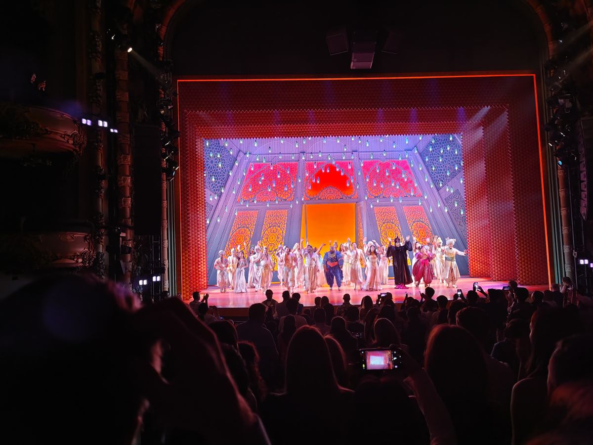 ミュージカルが素晴らしいのは勿論、ニューアムステルダム劇場が素晴らしくてビックリ。建物を見に来るだけでも良いと思えるレベルでした。英語はカタコトですが、ストーリーを知っているのでちゃんと楽しめました。ホールニューワールドのシーンが一番印象に残っています。是非、時間が合えば見に行って欲しいです。