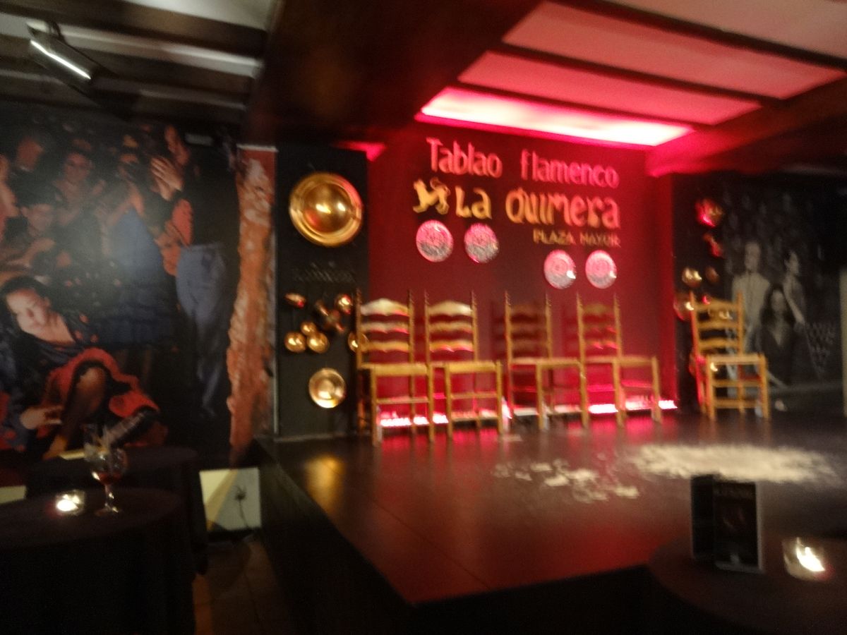 店内は30人位が入れる大きさで、観客は日本人は我々夫婦だけで女性だけのグループや男女4人のグループで総勢20人位でした。フラメンコは踊りは女性2人、男性一人とギター1人、歌1人でした。フラメンコは妻が趣味でやっていて、やはり本物は凄いとのことでした。