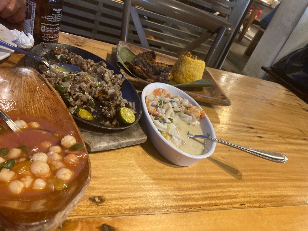 ローカルレストランは海岸沿いの屋外レストランで地元の人で混んでいて人気店なのだと思いました。自分達だけだと絶対行け無いしメニューも決めることが出来なかったと思います。