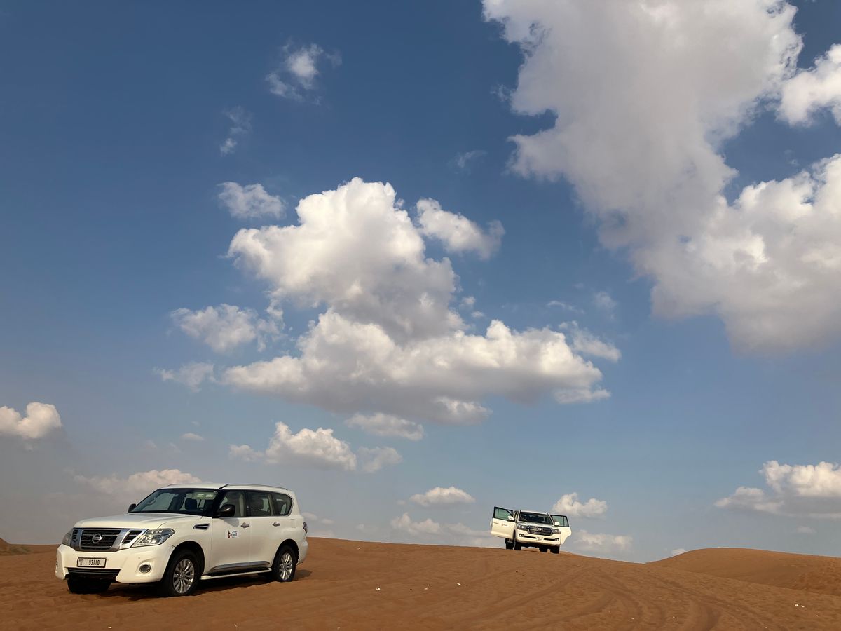 車内は、私たち2人以外に、日本人カップルとインド人?のおじさん1人でした。1時間ほど車を走らせると、休憩場所につき、お土産屋さんの中にあるトイレに行きました。トイレは、あまり綺麗とは言えませんが、日本の公園のトイレくらいの感じだと思います。また、そこでバギーに乗ることができるのですが、300aedほどかかるので、私たちは乗らず、他の3人は乗っていました。20分ほど待ち時間となってしまいましたが、座るスペースもあり、あまり気になりませんでした。ただ、待っている間に押し売りが来たりするので面倒です笑。他の3人のバギーが終わると、ガイドの方から1人水を一本もらいました。また、5分ほど車のタイヤの空気を抜くのを待つと、バギー場の隣の砂漠でドライブが始まりました。ドライブはずっと揺れてるわけではないので、物足りなく感じる方もいるかもしれませんが、私は十分楽しめました。途中で、下車して写真をとることができます。砂漠はかなり絶景で、ガイドの方に頼めば写真も撮ってもらえます。結局ドライブは、心配していた車酔いもせず終えられました。