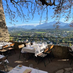 外国に来て見たこともないような景色の中で食事ができる。これぞ旅行の醍醐味。食事はまあまあ。雰囲気が最高。想像していない景色でした。もう少しザルツブルク城を見学する時間が欲しかった。