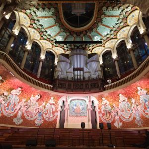 ホテルはカタルーニャ広場だったので徒歩7分程度でした。開場と共に中へ入り、最初に係の方に席を案内してもらって座席の場所を確認してから、1~3階まで写真を撮りに行きました。