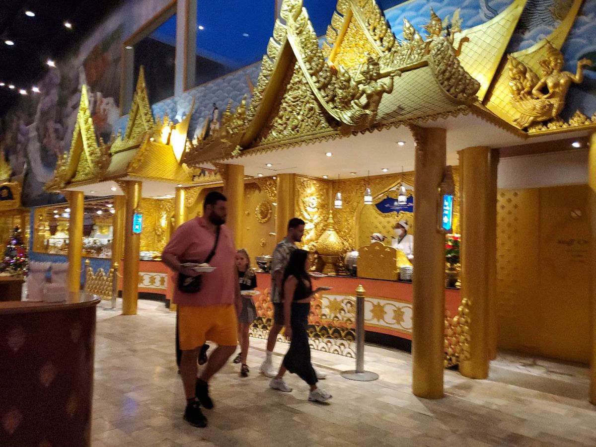 写真のショーを楽しめるものと期待してましたが、食事はバイキングで、テーブルの横で女性3人が踊るだけ。客席からステージを見上げる積もりだったのに、全然違いました。