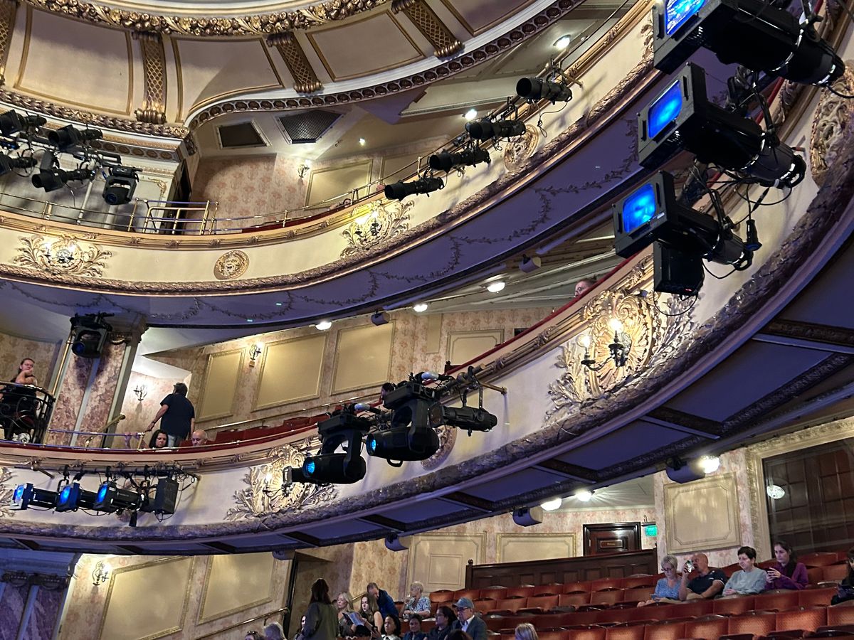 歴史ある劇場はクラシカルで美しく、客席はコンパクト。列がひと繋がりで通路がないため、奥の席の人を通すために立ち上がる必要があります(^_^;)。