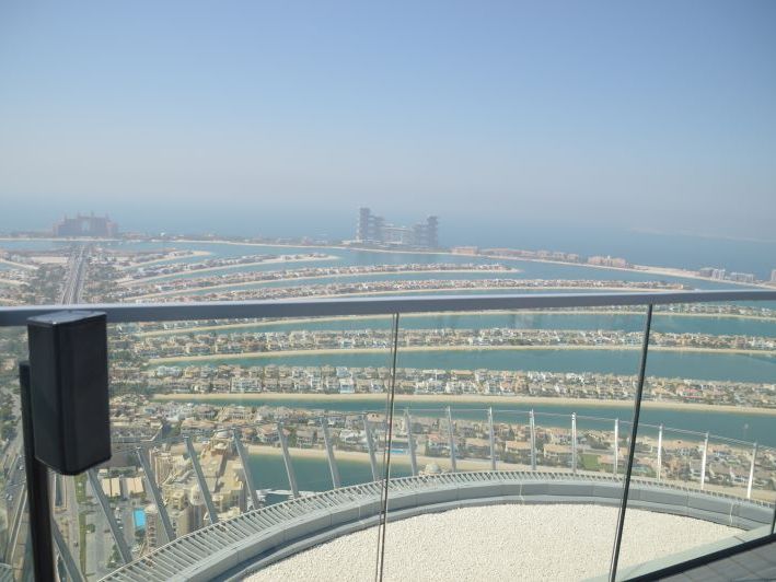 52階から54階へは階段をひたすら登り到着しましたが、胸のあたりまでのガラス製柵で囲われた四角いスペースは、360度視界を遮るものが無い素晴らしい景色を、風を感じながら見ることが出来ました。しかしながら、私はもうしばらく素晴らしい景色を眺めていたかったのですが、日差しも遮るものが無いので酷暑の中で妻がギブアップし、正味15分位で52階へ下りました。