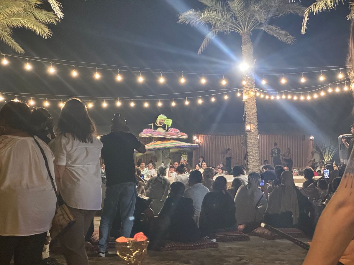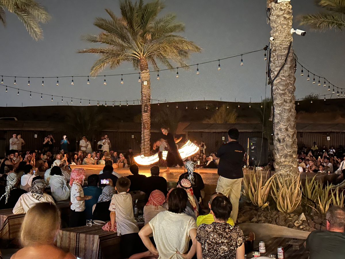 15時ごろに送迎の車がリビエラホテルの前に来てくれました。直前にベルトラのスタッフから到着時間の連絡がありました。運転手さんは口数少なく何も説明なく出発。笑 他のホテルで他の参加者をピックアップして砂漠へ。サンドバギー体験ができるところで一旦車を降りました私たちはバギー体験はせず、水 を飲んで休憩。その水が高い!!笑。砂漠なので貴重ですものね。そのご また車に乗り、砂丘ドライブ。何も言わずに始まりました。運転手さんが頑張って坂を上がったり、下がったり。思っていたより迫力はなかったかな。そしてサンセットの時間帯になりを降りてフォトタイム。良い写真が撮れました。その後は、ディナーとショーを楽しめるキャンプサイトに到着。ラクダ乗り体験を一瞬だけして、ディナー会場へ。正直ビュッフェご飯は微妙ですが、シーシャやファイヤーショーなど楽しめました。