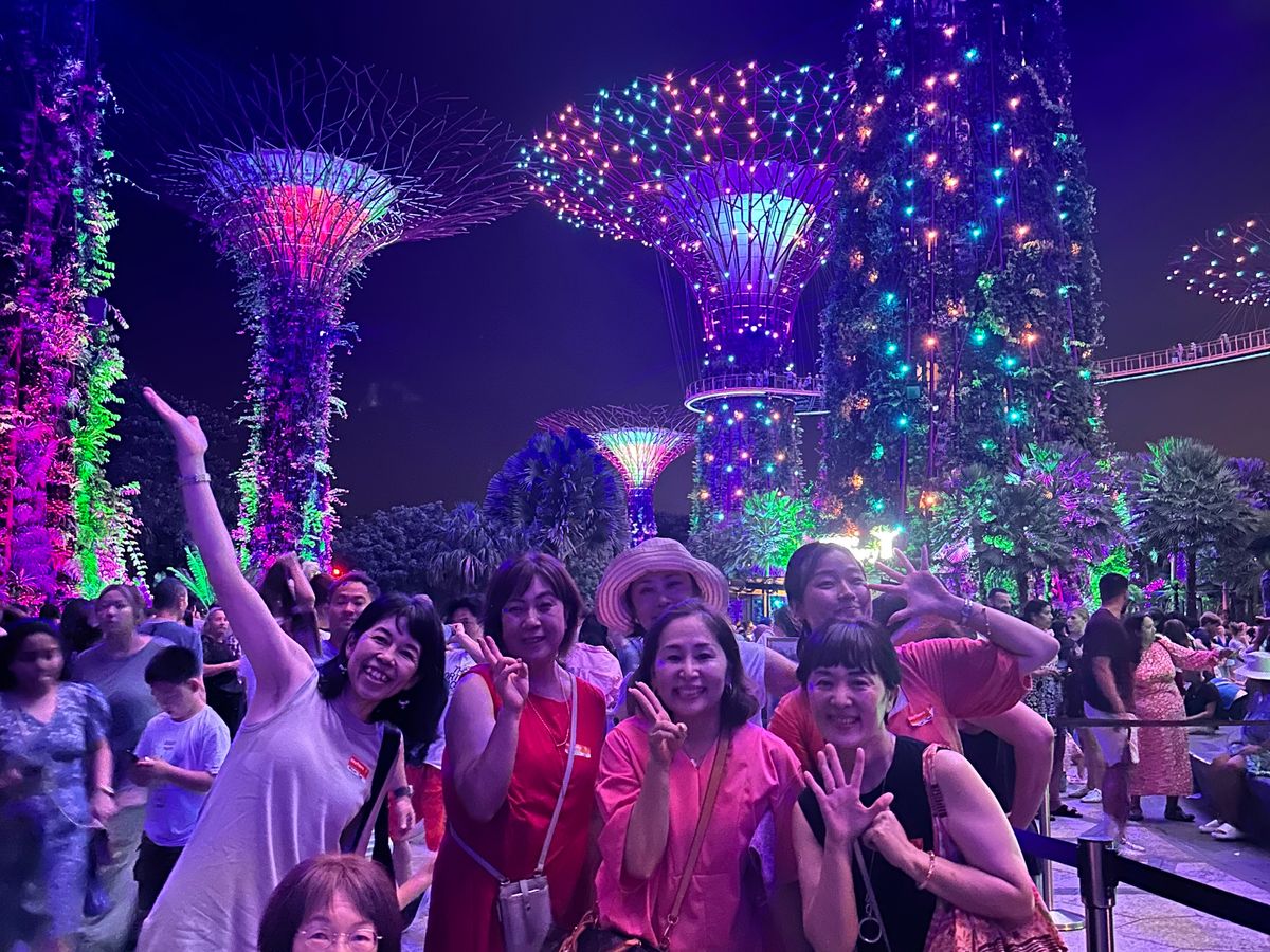 団体で申込したのですが、男性のガイドの方が、一生懸命にバスで話してくださり、ガーデンバイザベイやスペクトラムもグッとタイミングで鑑賞できて、大感動しました!みんな大喜び。とても良い思い出になりました。心から感謝します。ありがとうございました。おすすめのツアーです。オープントップバスはとても気持ちよく、夜景見ながらのクルーズも最高でした。