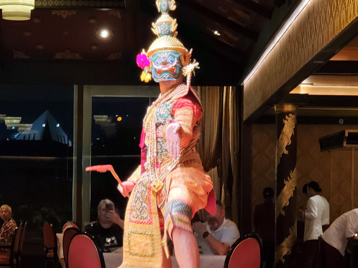 食後は隣接する劇場に移動し、月曜日でさほど混んでいなかったこともあってか最前列の真ん中に案内してもらい、またそれぞれのグループごとに一席ずつスペースを空けて座らせてくれた。因みに私の席からは出演者の表情がよく見え、ファイヤーダンスの火の熱を感じるほどの迫力だったが、コンパクトな造りなので後ろの方の席でも逆に全体が見渡せ十分楽しめるようだった。