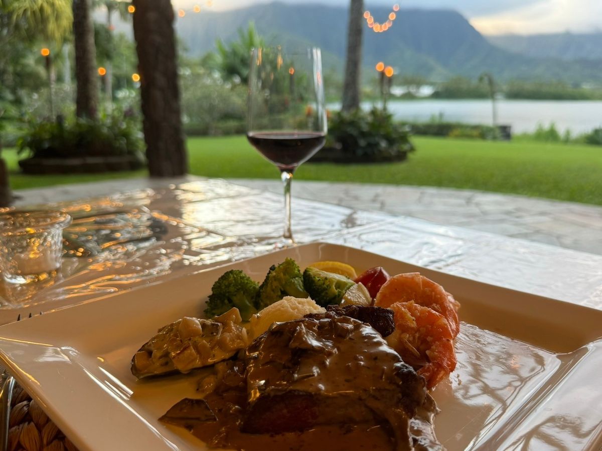 周りは緑に囲まれており、近くの山には雲がかかったり晴れたりを繰り返し、ハワイの自然を感じることができます。
