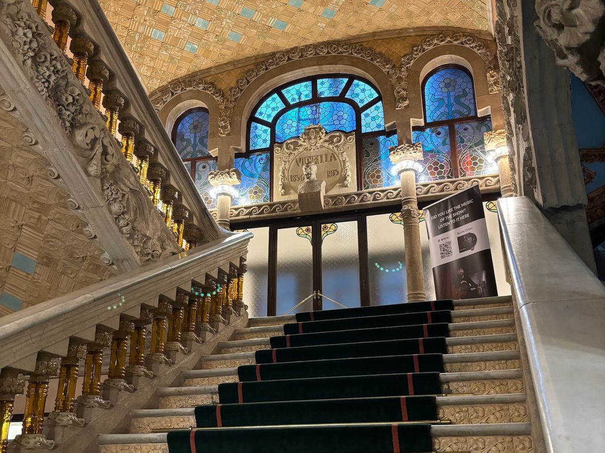 とても素敵な場所で素敵な時間を過ごすことができました!まずは会場であるカタルーニャ音楽堂の雰囲気が素晴らしかったです。場内に入った瞬間、素敵な内装とふかふかのカーペットが敷かれた螺旋階段でテンションが上がります!そしてホール内の装飾もとても素敵です。演者の方々のパフォーマンスもキレッキレで見応え十分でした。曲や衣装替えで様々なパターンのフラメンコを見ることができ、とても充実した時間を過ごすことができました。唯一難点があるとすれば開始時間が21:30とかなり遅かった事です。スペインの人たちは夕食の時間も遅いらしいので仕方ないかもしれませんが、終わったのは23:00ごろで、日中観光をした後だったのでさすがに眠かったです。それ以外は完璧といえる体験でした!