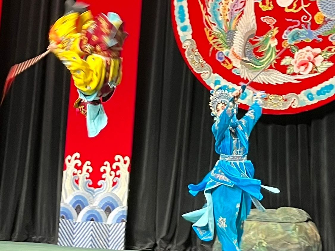開演のご案内で皆様方が座席に戻り20時からいよいよ開幕。演目は、たまたま旧暦の5月5日端午節に因んだ「白蛇伝」。長いお話しですのでストーリーも楽しめる程度に上手くカットされ前半はたっぷりと独特な歌声と所作を堪能し、後半には息つく暇もないほど次々に繰り広げられるアクロバットと剣舞での演出。娘も凄い凄いとつい口に出してしまうほど。皆様方も拍手の嵐であっと言う間の1時間でした。