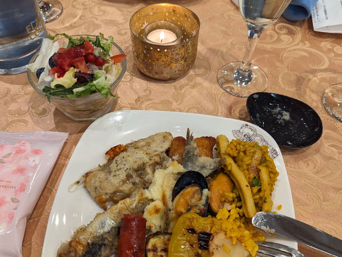 ショーを見る前にビュッフェ形式の食事をしました。のんびりしていたら牛肉などなくなってしまう料理があったので、席に案内されたらすぐ料理を取りに行った方がいいと思いました。料理は美しく盛り付けられ、味は全般的においしかったです!ショーでは、前列優先とありましたが、私たちは3列目で中盤辺りだったので、撮影タイムはいい写真が撮れず残念でした。初めてのフラメンコでしたが、あんなに情熱的で激しいとは思っていなかったので感動しました。私たちは散々歩いて凝縮した観光をした後だったので、静かなシーンでは思わず寝てしまいそうになりました。街歩きなどで疲れていない日に見に行くのがいいと思います。