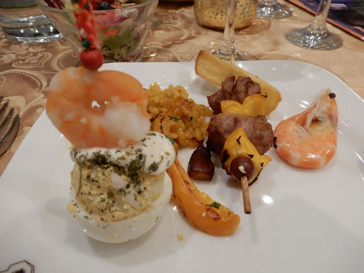 VIPコースのおかげで、一番先にビュッフェを取りに行けました。ホテルビュッフェとまではいきませんが、ある程度、種類がある方だと思いました。お肉も種類が多くて美味しかったです。