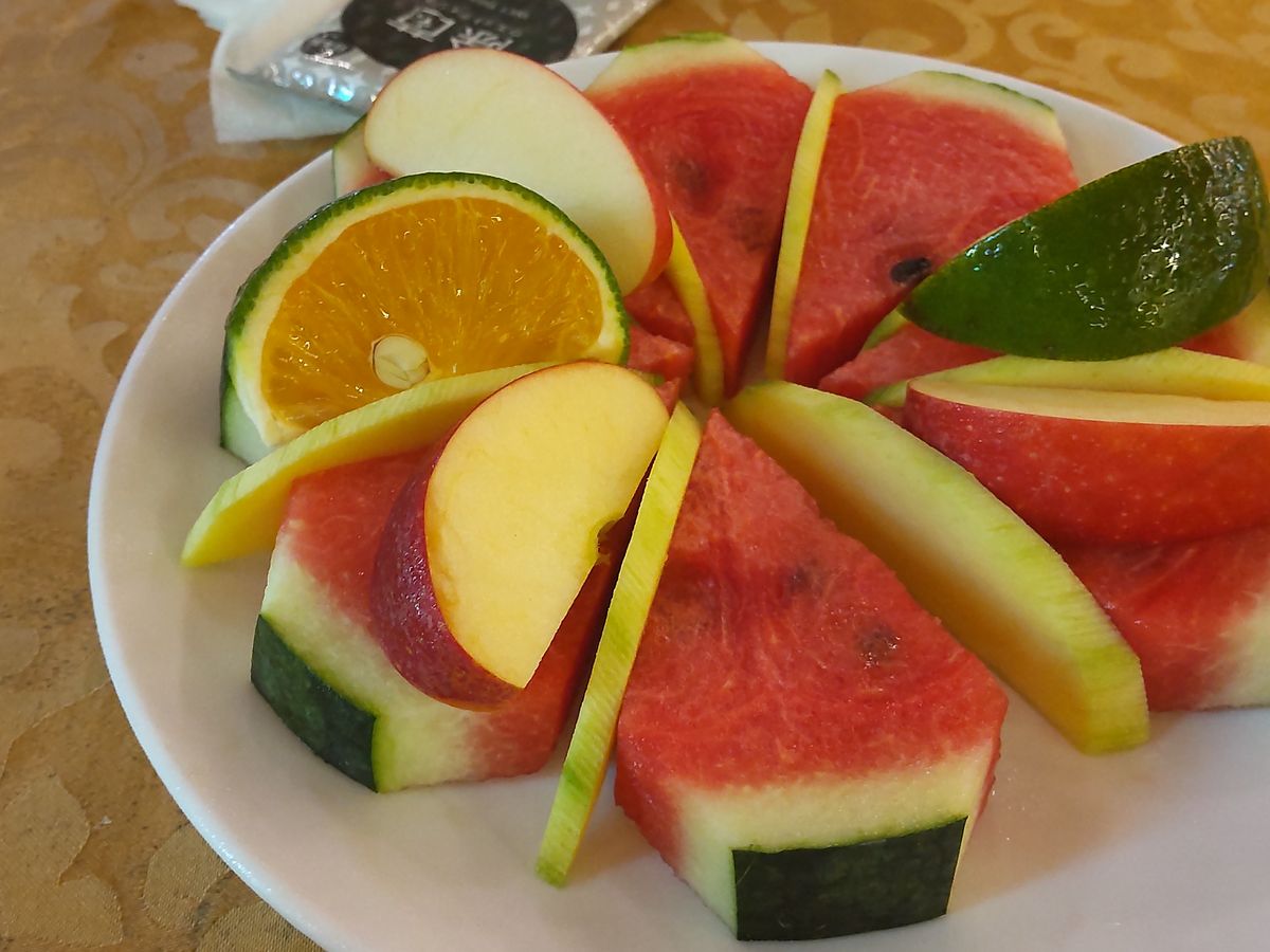 すぐにビュッフェがスタートかと思っていましたが、ウクレレを弾きに来たり、写真を撮りにきたり、食事まで意外と時間がかかりました。