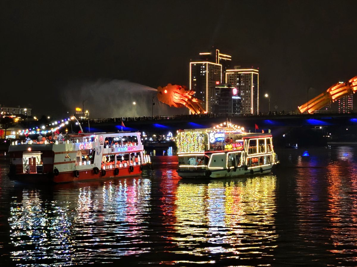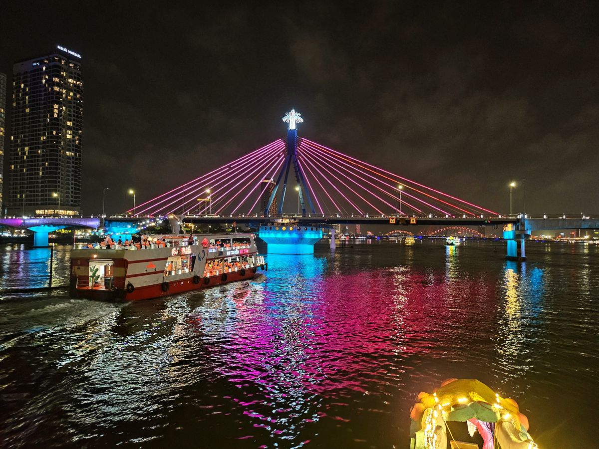 ハン川のナイトマーケットを散策してから乗船し食事。内容は想定内。その後中国人の団体客が窓際にイスを移動させ好き放題。クルージングの際に見かねた船長さんが先頭のデッキ席に入れてくれて良かったです。中国人は拒否された。笑
