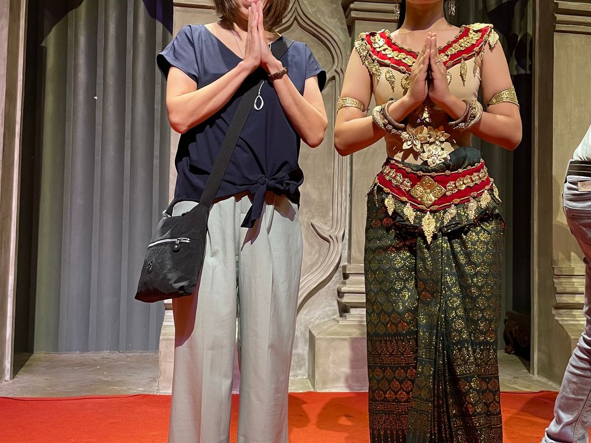 現地で夕方から時間が空く日があり、何かできないかオンラインで調べると、ベルトラさんでアプサラダンスショーの予約ができるとのこと。当日3時まで予約OKなのも助かりました。ディナービュッフェ付きで、この値段は安い!案内された席は前から3番目で、ショーがよく見えました。ダンスの説明を日本語で書いてあるパンフレットも用意してあり、いたれり尽せり。