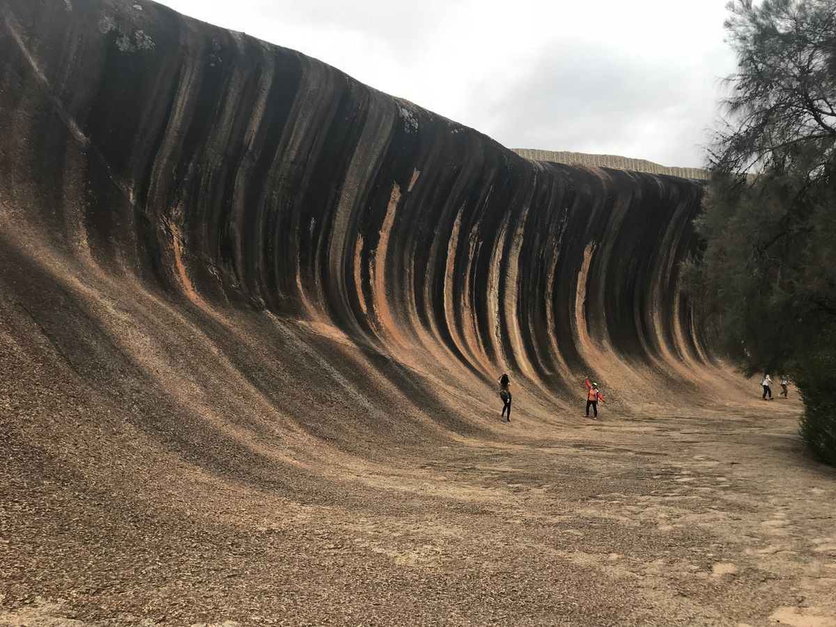 往復600キロ近くを、8時前から21時ごろまでバスに揺られるツアーですが、デラックスバスで座り心地もよく、LCCの飛行機に比べれば格段に快適でした。英語ツアーということで、ドライバー兼ガイドさんの説明は(こちらの英語力不足で)わからないところもありましたが、説明のパネルやパンフレット(こちらも英語ですが)がバス車内で回覧されました。メインとなるウェーブロックも、往復の道中車窓から地平線まで広がる牧草地や麦畑も、言葉不要の迫力とスケールの大きさを味わえ、オーストラリアの大地の雄大さを体感できるツアーでした。ツアー当日はあいにくの空模様で、一日中雲に覆われていましたが、その分日焼けは少なかったです。