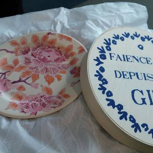 グル―プ参加が条件だった「ジアンの絵付け体験」が、一人でも参加できるようになり、さっそく体験してまいりました♬ 心配していた言葉の壁は、日本語堪能、とても親切で頼もしいソレーヌさんのお陰で、安心して過ごすことができました。まず、ジアンの歴史を勉強、ちょっとしたクイズの後、絵付けスタート。ソレーヌさんのアドバイスを受けながら、自由に色を付けてゆき、世界にひとつだけのお皿が完成しました♬ 無限にある色の組み合わせ、濃淡、今回絵付けのプロセスを知り、ジアンが益々好きになりました。そして、仕上げにはなんと!ジアンのスタンプを押させてくださいました(自分のイニシャルも)。これは嬉しかったです。更に持ち帰り用にジアンの箱に入れてくださり、何もかもがとてもいい記念になりました。