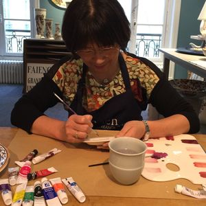なかなか本物の絵付けと同じような仕上がりにはなりませんが、ソレーヌさんがいろいろアドバイスをしてくれて、楽しい時間をすごすことが出来ました。大満足です。ありがとうございました。