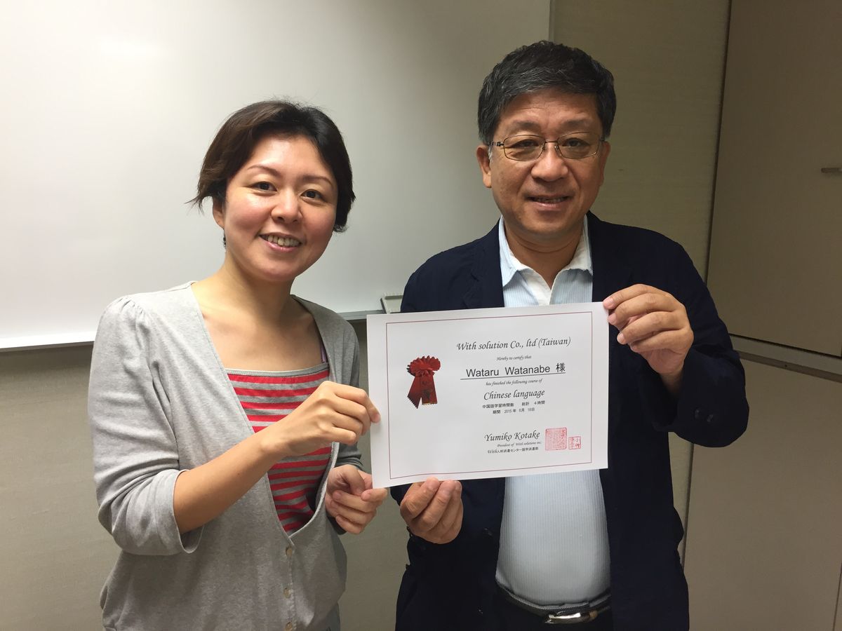 最後に講師の先生、アシスタントお嬢さん、営業部長さん本当に色々ありがとうございました。また、ひとつチャレンジをすることを見つけることができました。 謝謝大家!