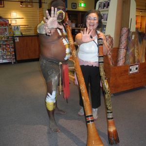 ダンスショーや食事が終わり、帰りの送迎バスが来るまで、アボリジニの方々が民族楽器を吹かせて下さり、自分たちの生活についてなんでも質問に丁寧に答えて下さり、本当にいいおもてなしを受け心地よく時間が過ぎていきました。