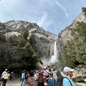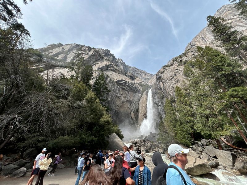 3月末の時期なので寒いかと思っていたら、天気が良く晴れていたためかヨセミテは暑いくらいで上着要らず半袖シャツの人も大勢いるくらいで、滝壺近くの場所は滝の飛沫が涼しくて気持ち良い散歩ができました。