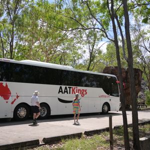 AAT Kingsの大型バスで出発。ガイド兼ドライバーのMel(女性)は明るく、おしゃべりも楽しかった。ウォータータンク・トイレもあり、冷房もよく効いてて快適なドライブ。壁画の色・描かれた由来などはオーディオガイドで理解できました。実物はやはり圧倒されます。
